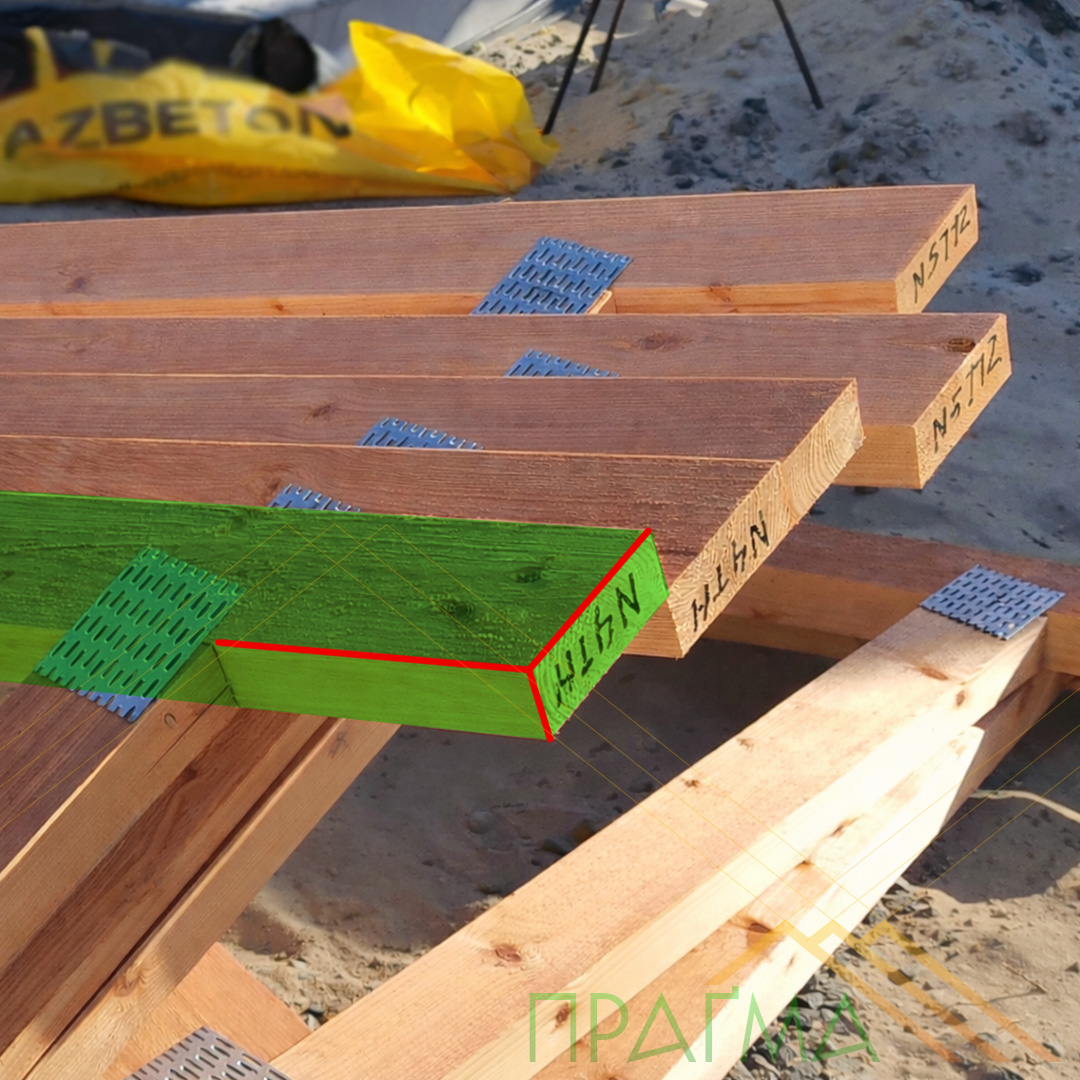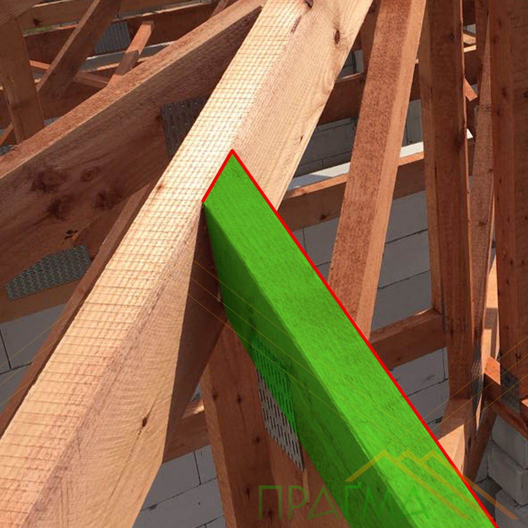 При возведении вальмовой крыши или при стыковке нескольких поверхностей в сложных кровельных конструкциях неизбежно возникает необходимость подрезать элемент фермы под определённым углом для идеального примыкания к другой ферме. Это происходит, в частности, при присоединении второстепенных ферм к основной, а также в местах сведения в одну точку основных (гердерных) ферм.